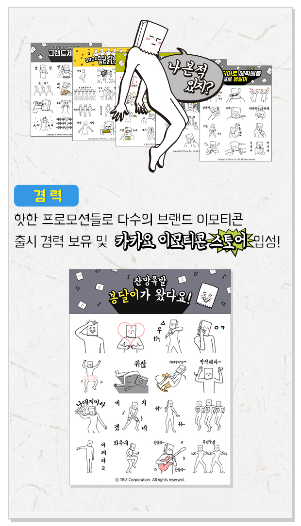 개성넘치는 몸짓으로 다수의 카카오 브랜드이모티콘과