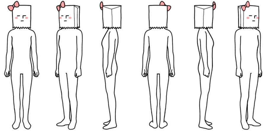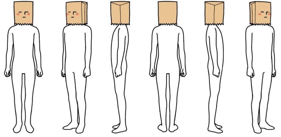 몸매가 드러나는 타이즈 형태의 바디와 얼굴을 가리기 위한 봉투 이 외에는